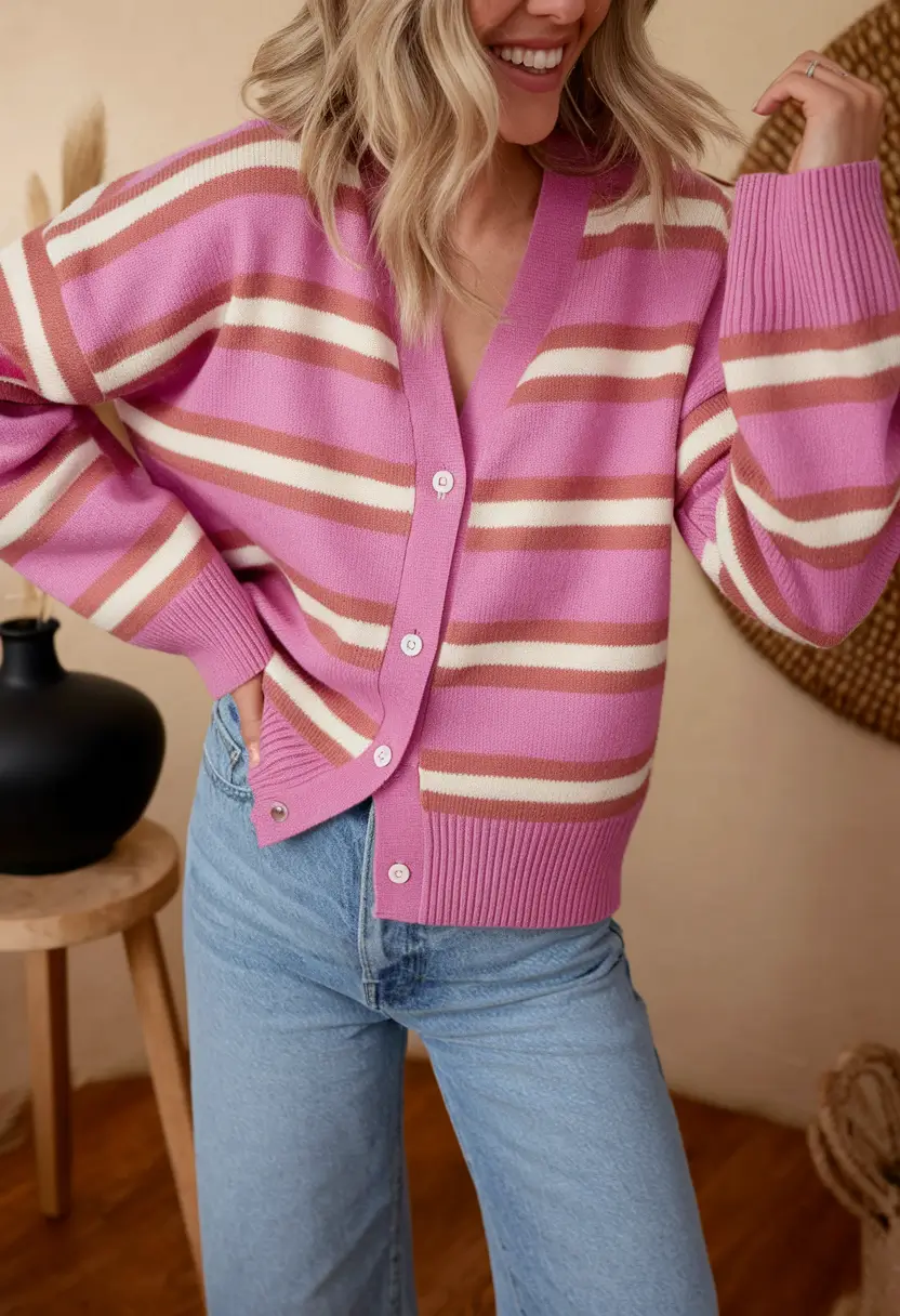 Un Tocco di Rosa: Il Cardigan a Righe per un Autunno Gioioso!