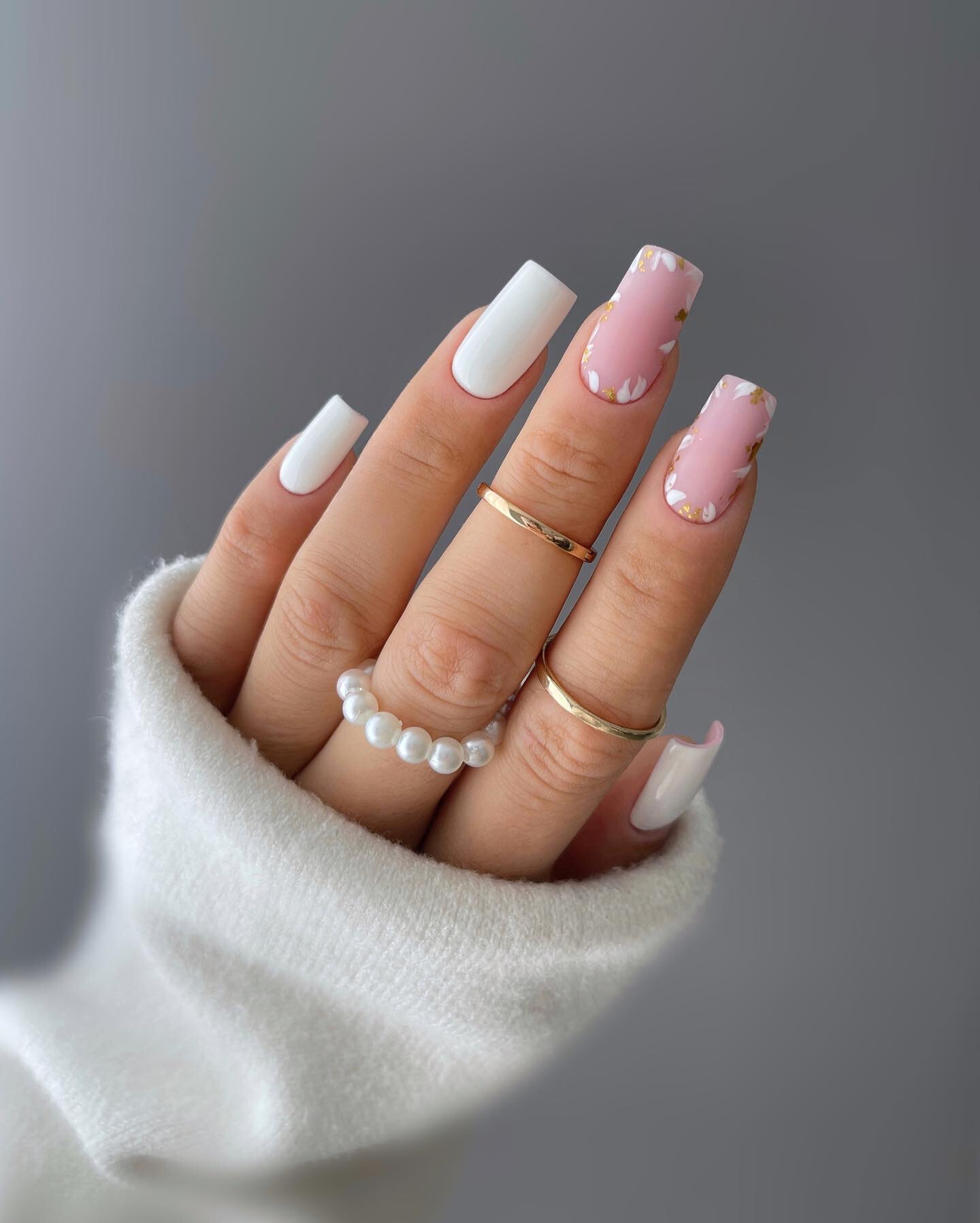 Delicatezza floreale: bianco e rosa cipria per unghie chic